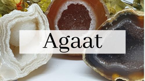 - Agaat is een variëteit van chalcedoon met gestreepte of gevlekte patronen. Het komt in verschillende kleuren voor en wordt vaak gebruikt voor stabiliteit, moed en bescherming.