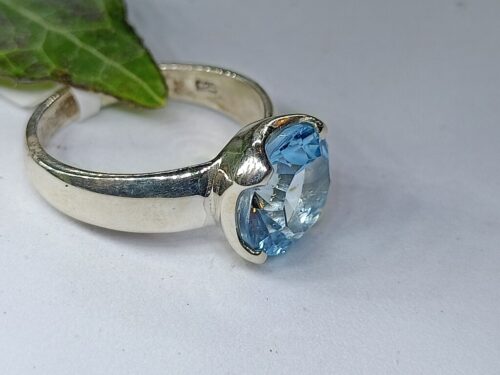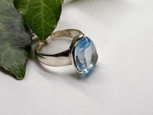 Blauwe Topaas Ring Maat 17.5 925 Sterling zilver concave geslepen