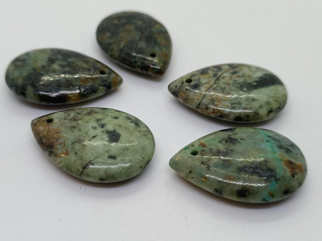 Afrikaans Turquoise druppel. Rijggat is ongeveer 1,2-1,5 mm.