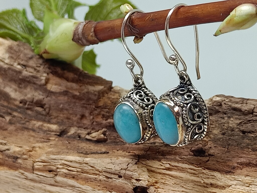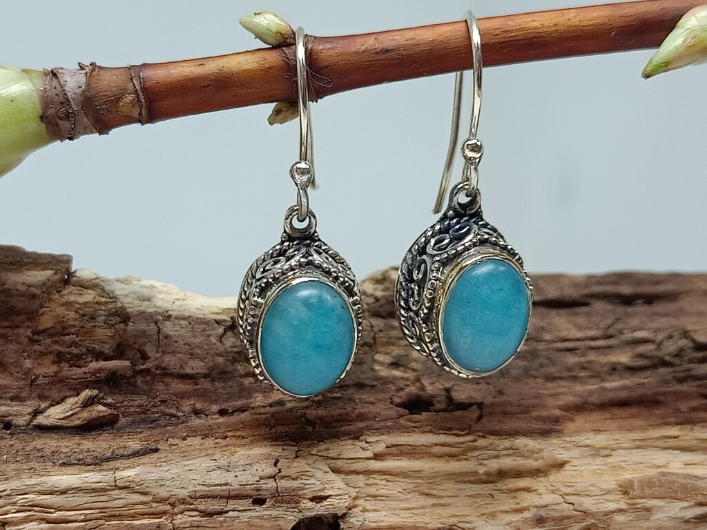 Amazoniet Barok Oorbellen Hangers 925 Sterling zilver. Steen is ovaal.