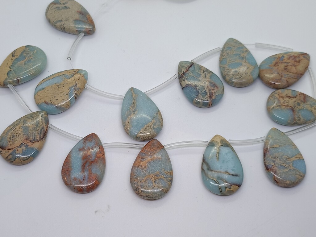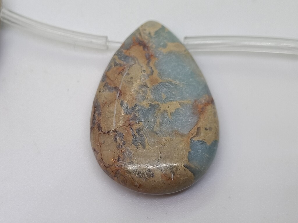 Aqua Terra Jaspis druppel doorboord 3*2 cm. Rijggat is ongeveer 1 mm.