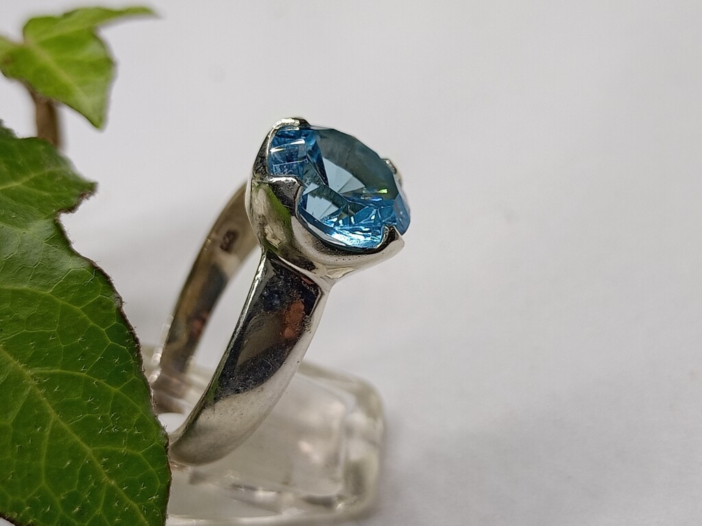 Blauwe Topaas Ring Maat 16.5 925 Sterling zilver concave geslepen