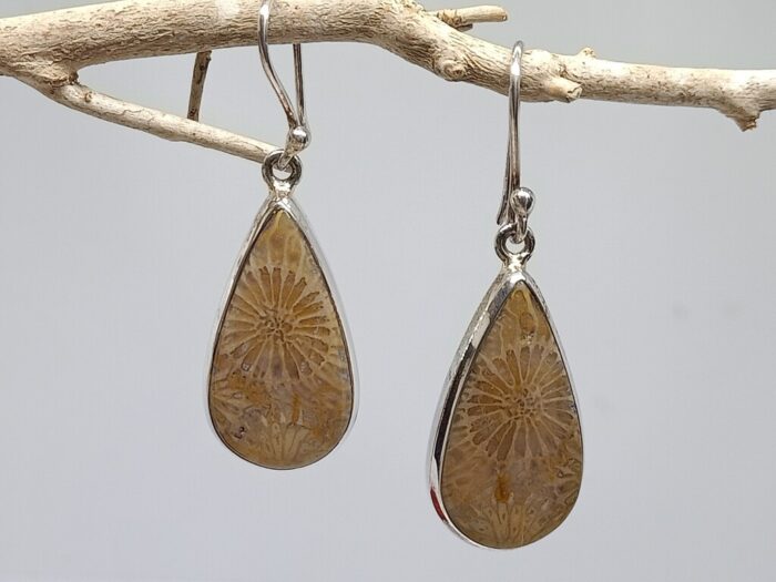 Fossiel Koraal Oorbellen 925 Sterling zilver