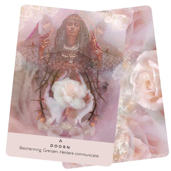 De Roos fluistert al vele jaren tegen me. Ze leidde me tijdens het maken van dit orakel. Hierdoor kon ik de sluier oplichten van het eeuwenoude mysterie van de roos, zodat jij verbinding kunt maken met de heilige energie van de roos. Ik ben ervan overtuigd dat de roos een krachtige heler is in deze tijd.In 2010 kwam de roos voor het eerst in mijn leven op een manier die ik bewust begreep. Vlak daarvoor was deze mysterieuze, helende bloem verborgen in het volle zicht. Ik maakte een moeilijke tijd door en ik ervoer diep en hevig verdriet. Toen mijn levenskracht afnam, verscheen de roos als mijn kameraad. Ze zorgde dat ik de bodem van mijn veranderende leven voelde. Tegelijkertijd liet ze me zien hoe ik mijn hart moedig moest openen op een moment dat ik me het liefst af wilde sluiten en af wilde zonderen. Ze leidde me om mijn hart sterker te maken, om te helen en zachter te worden. Zo kon ik terugkeren naar de Aarde en me openen voor al het zoete dat het Leven te bieden heeft door de schaduwzijde en de doornen onder ogen te komen.