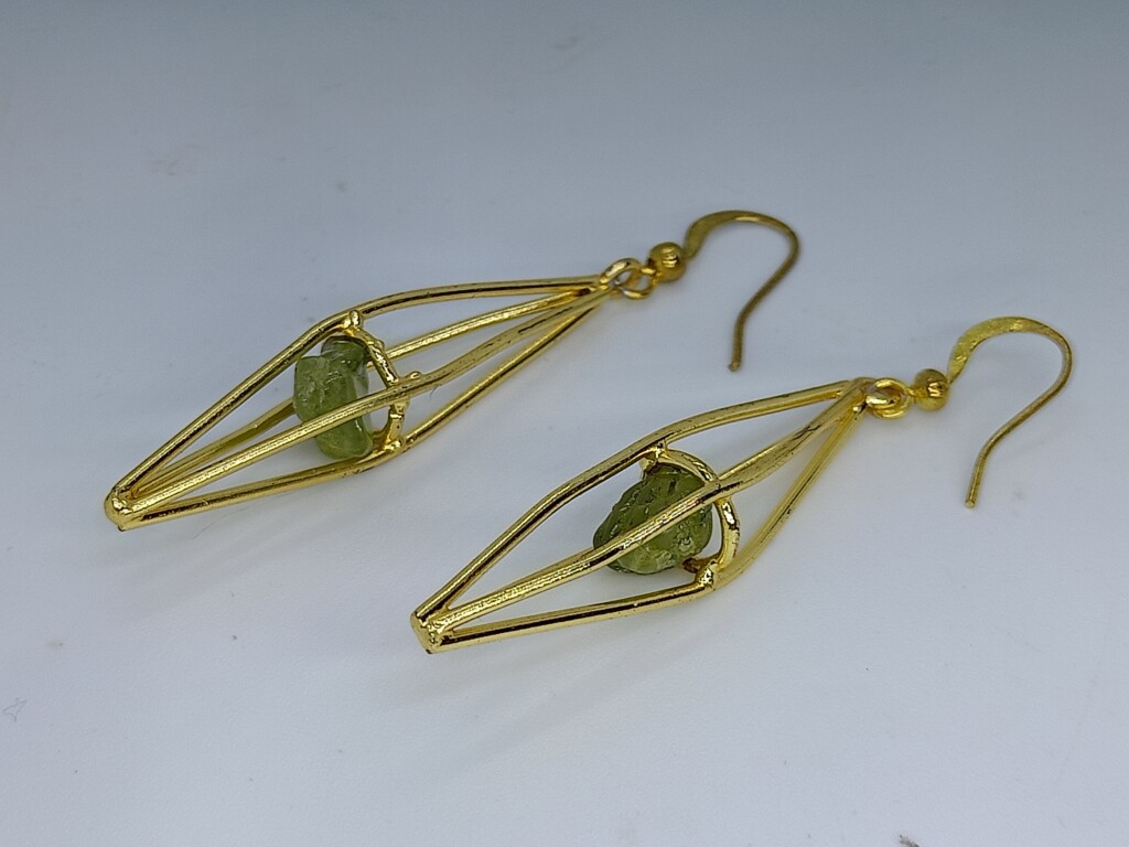 Olivijn/Peridoot Oorbellen Ruw Verguld