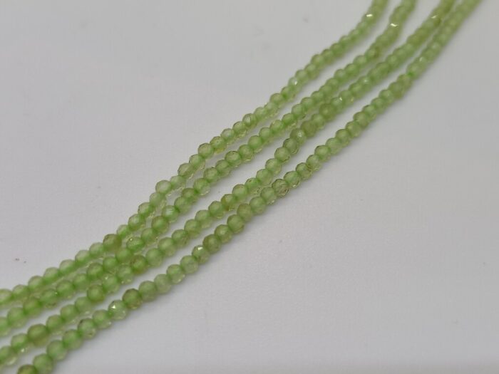 Peridoot 2 mm facet. Rijggat is ongeveer 0,5 mm.