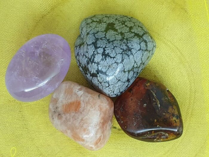 Barnsteen Sneeuwvlokobsidiaan Zonnesteen Amethyst