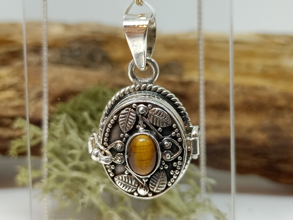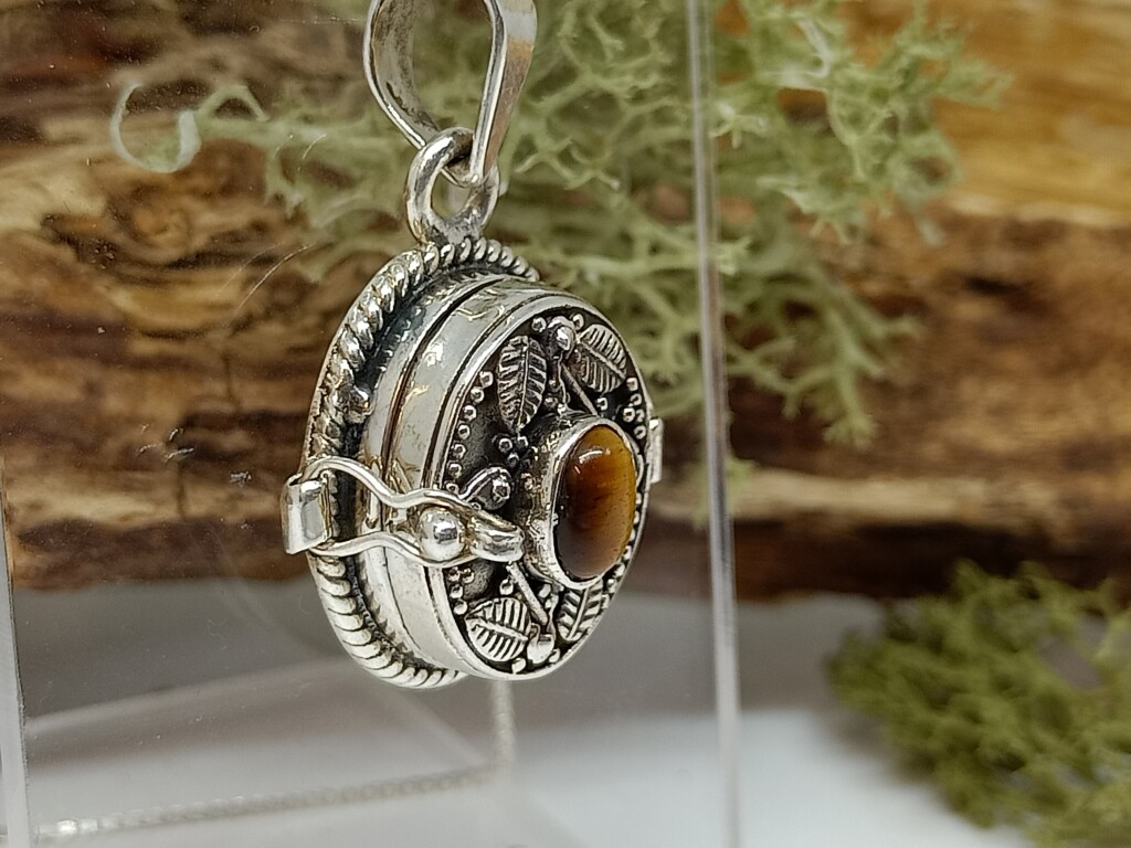 Tijgeroog Hanger 925 Sterling Zilver. De hanger kan open!